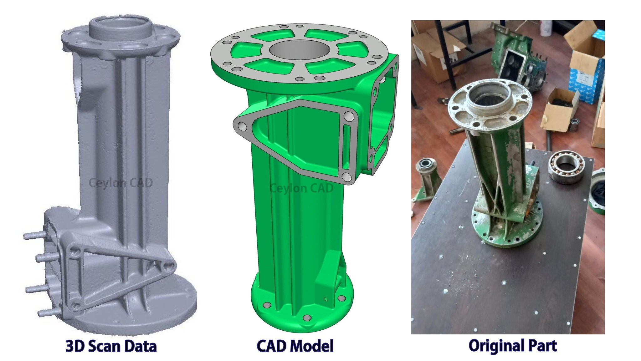 Reverse engineering is the process of deconstructing an existing product to understand its design, functionality, and structure, allowing for replication, improvement, or modernization. At Ceylon CAD, we specialize in reverse engineering with a focus on precision and innovation. By leveraging advanced 3D scanning technologies, we are able to accurately capture complex geometries and fine details that are often difficult to analyze using conventional methods.